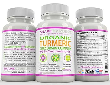 Shape Organics Turmeric Curcumin 180ct 2100mg 95 Pure Extract W Bioperine Dr
